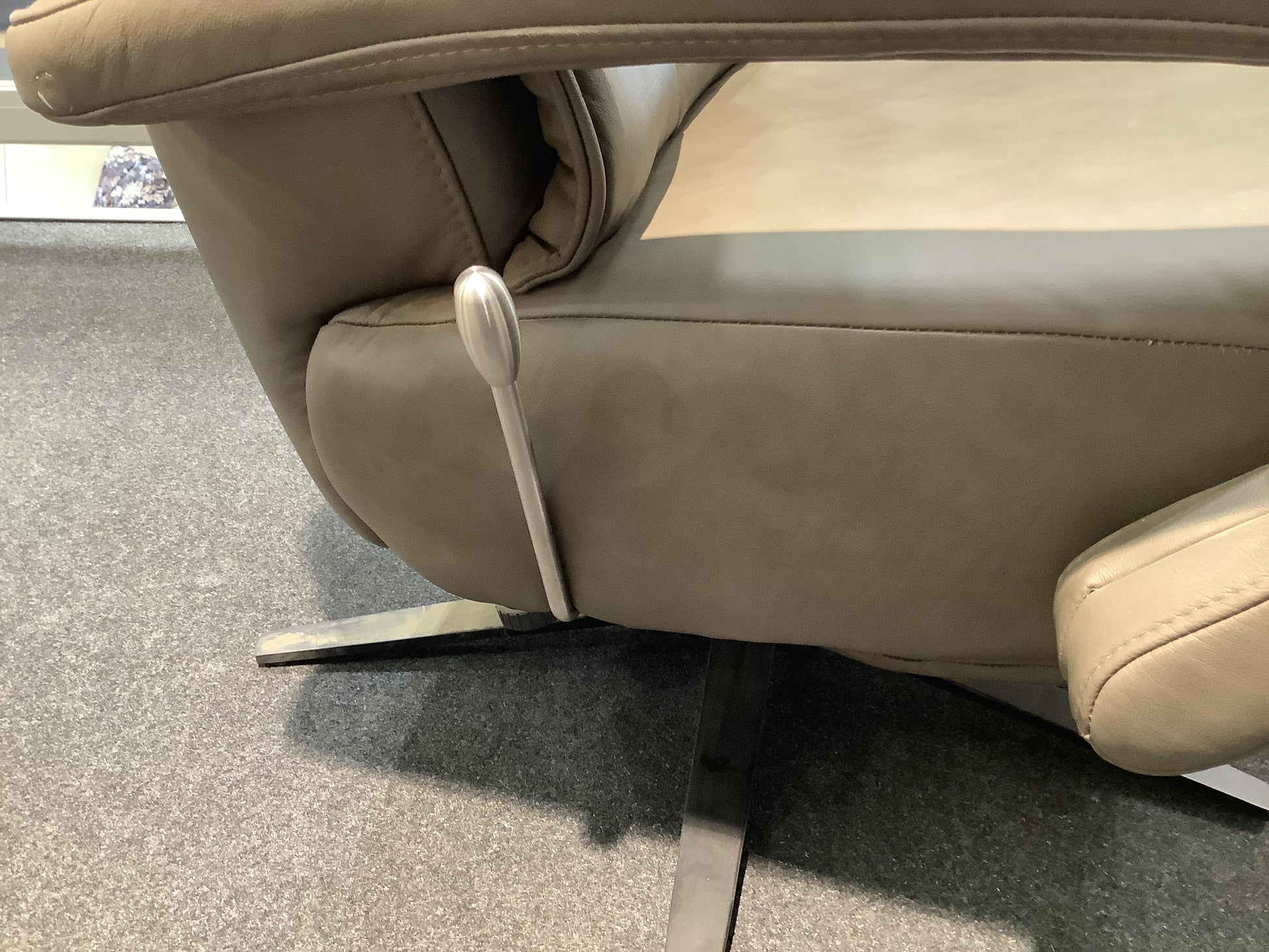 Rücken echt bezogen/ Armlehnenverstellung/ Kopfteilverstellung/ Relaxfunktion (manuell)